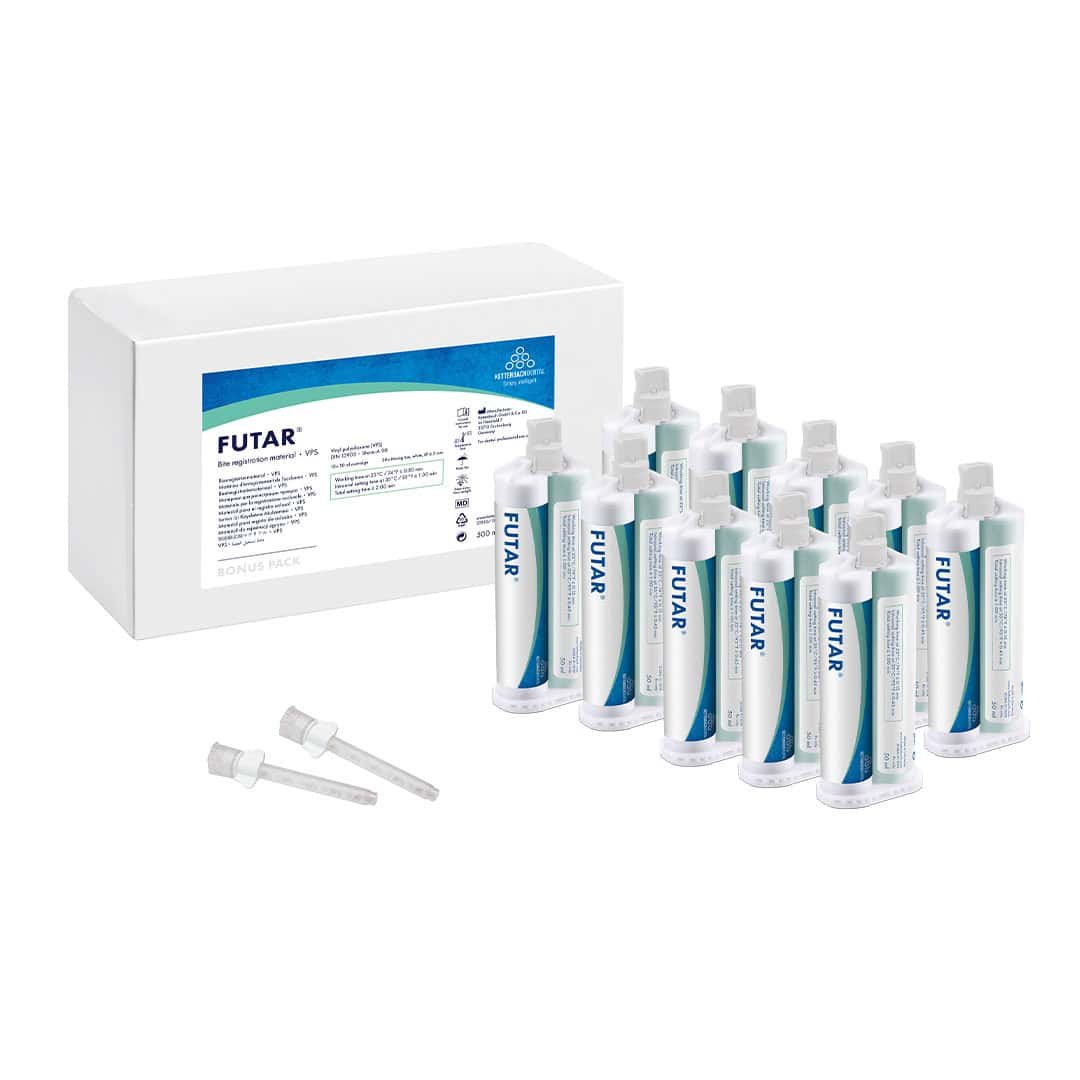 Futar® D Fast en Futar® D “rood” zeer geschikt voor een “gesloten” beetregistratie; labiale en/of buccale afdruk van de gewenste positie. Hierdoor is er minder kans op een beetverhoging nadien. Futar® Fast en Futar® “groen” Futar® Easy en Futar® Easy Fast zijn i.v.m. hun flexibiliteit, bij voorkeur te gebruiken bij een volledige occlusale beetregistratie (“hoefijzer”). Futar® D Slow als o.a. fixatiemateriaal bij de edentate implantaatafdruk in combinatie met het “none pressie” afdrukmateriaal Panasil® contact two in one Light of het nog dunnere Panasil® contact plus X-Light. Futar® D Slow is verder nog te gebruiken voor diverse tandtechnische indicaties en toepassingen.