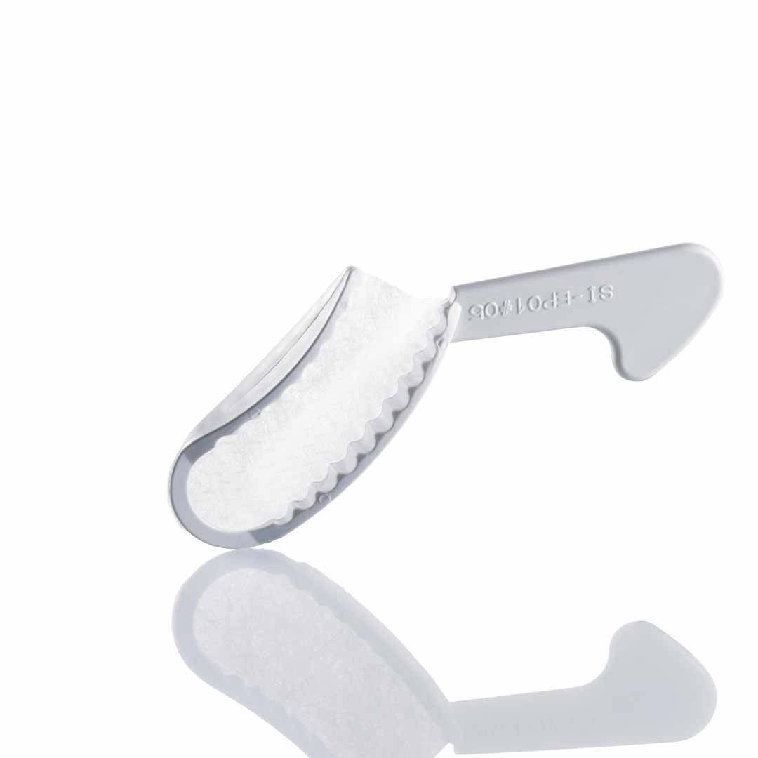 Dankzij het gaasje in het midden en de lepelranden van deze Multi Tray Posterior disposable afdruklepels blijft het afdrukmateriaal prima zitten.