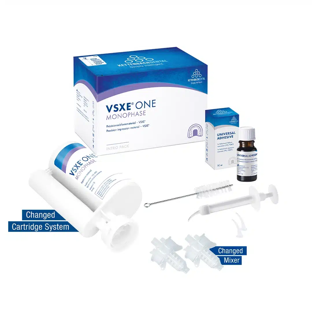 Ervaar de volgende generatie afdrukmaterialen met de Kettenbach VSXE® One. Deze geavanceerde afdrukoplossing biedt niet alleen superieure prestaties, maar is ook ontworpen voor het leveren van maximale precisie monofase afdrukken, een onmisbare aanvulling op elk modern tandheelkundig laboratorium of praktijk.