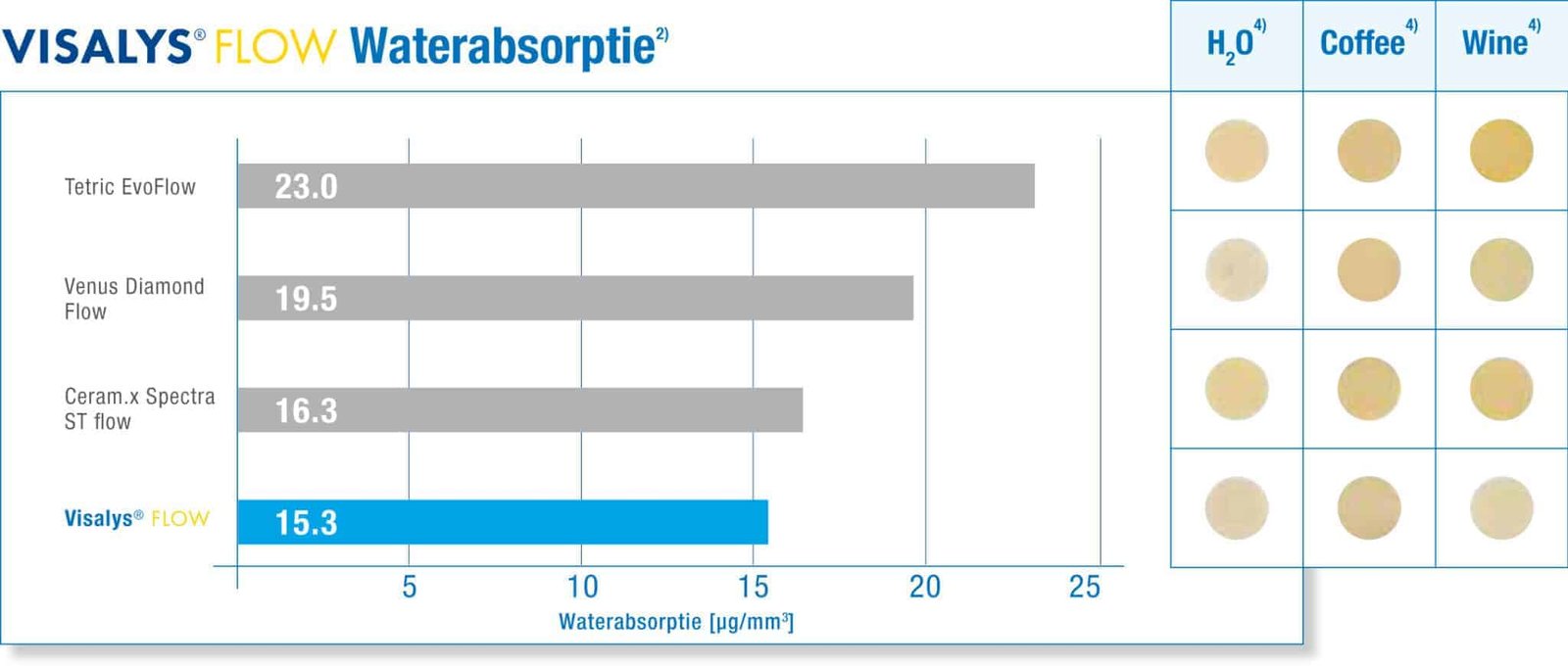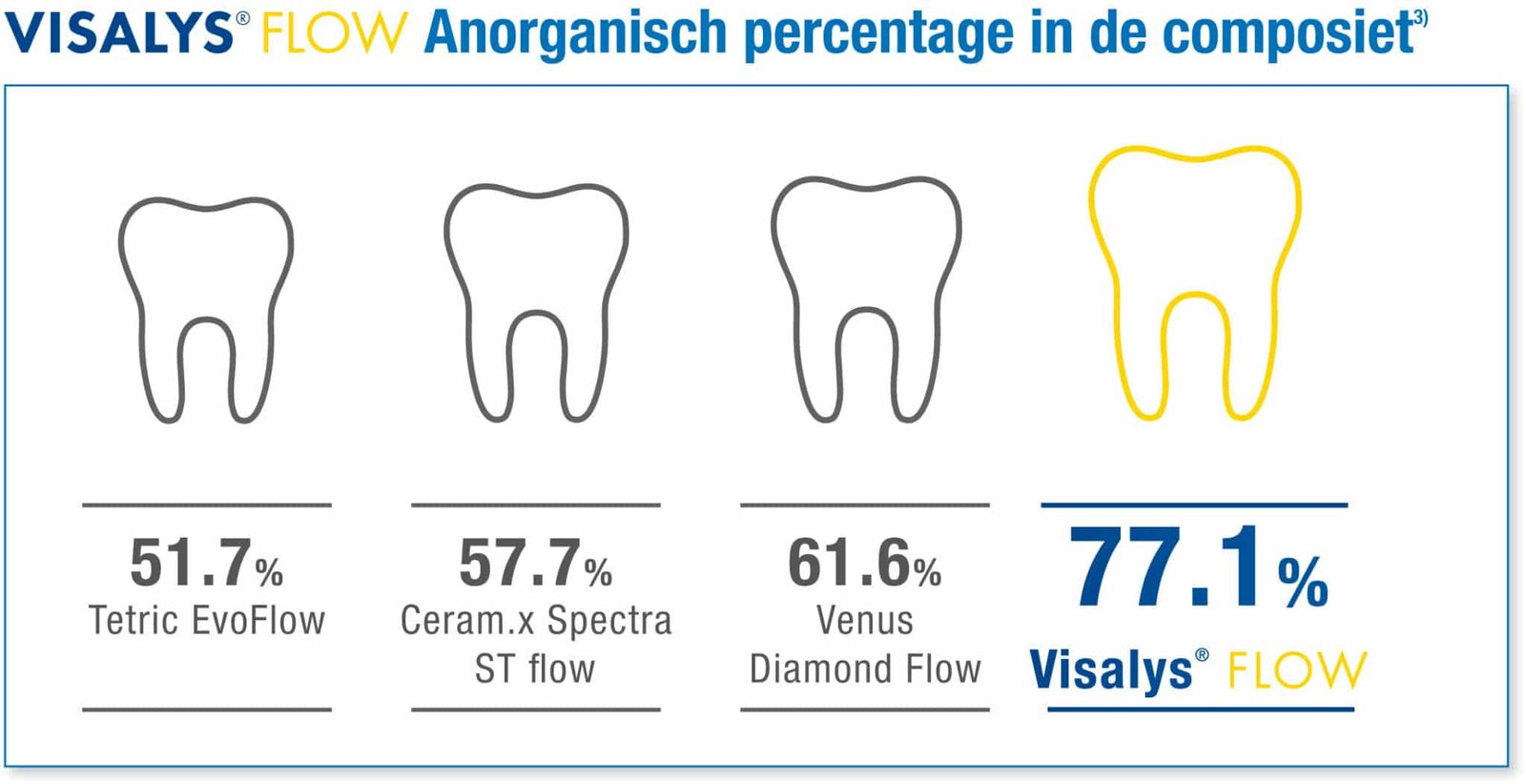 Visalys Flow is een lichthardend, vloeibaar restauratiemateriaal dat bewezen composiettechnologie combineert met innovatieve nanotechnologie. Het materiaal is geschikt voor restauratieve behandelingen in de anterieure en posterieure regio. Dankzij de lage viscositeit vertoont Visalys Flow een zeer goede bevochtiging en aanpassing aan de caviteitswanden. Het speciaal ontwikkelde Flex Shade System maakt efficiënt werken mogelijk met slechts 7 kleuren voor esthetische restauraties. Het begeerde kameleoneffect van de nieuwe nanohybride materialen helpt u in een handomdraai de juiste kleur te kiezen.